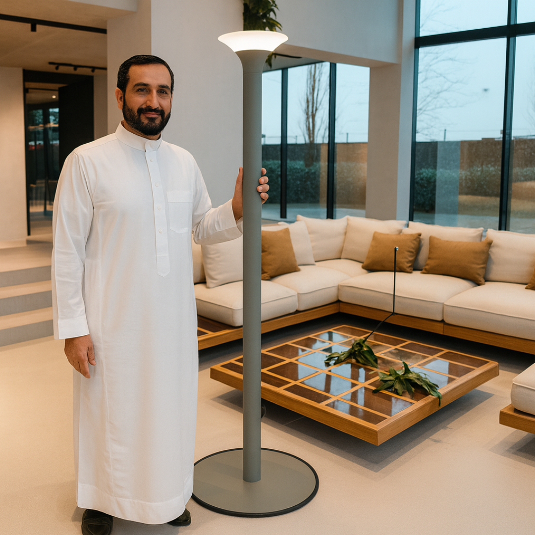 Tailor Parasol is not your average garden umbrella — it’s a design icon that first turned heads at Milan Design Week. With its innovative top-down opening system, it unfolds like a blooming flower, transforming effortlessly from a stylish shade provider by day into a glowing centerpiece by night.